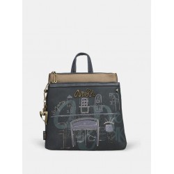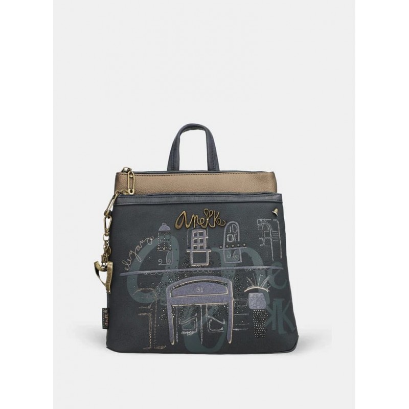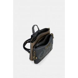 Mochila mediana para mujer de detalles de la marca, cierres exteriores e interiores más asa para llevar de mano y dos para llevar en la espalda.