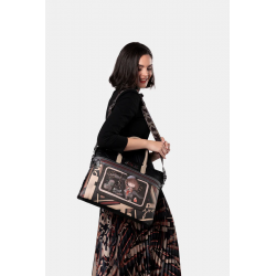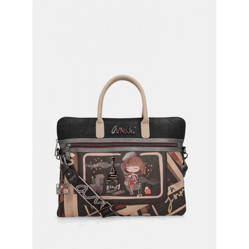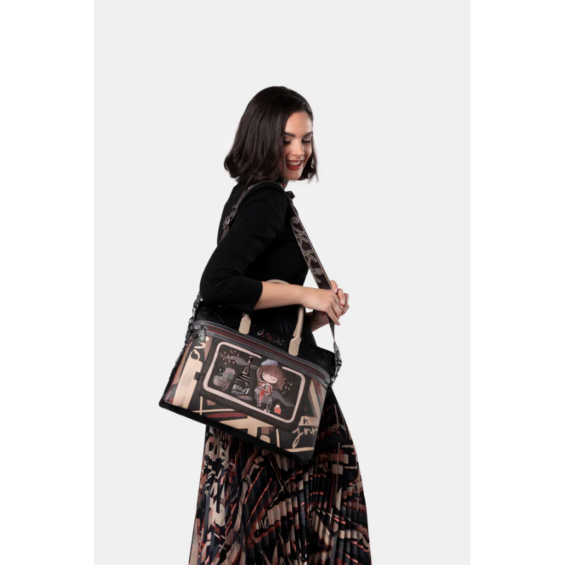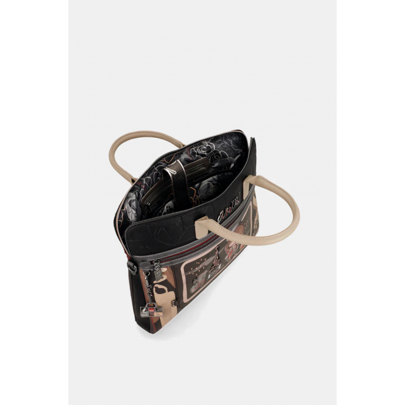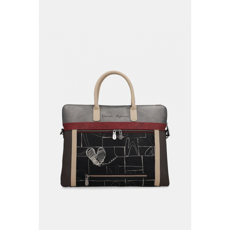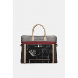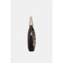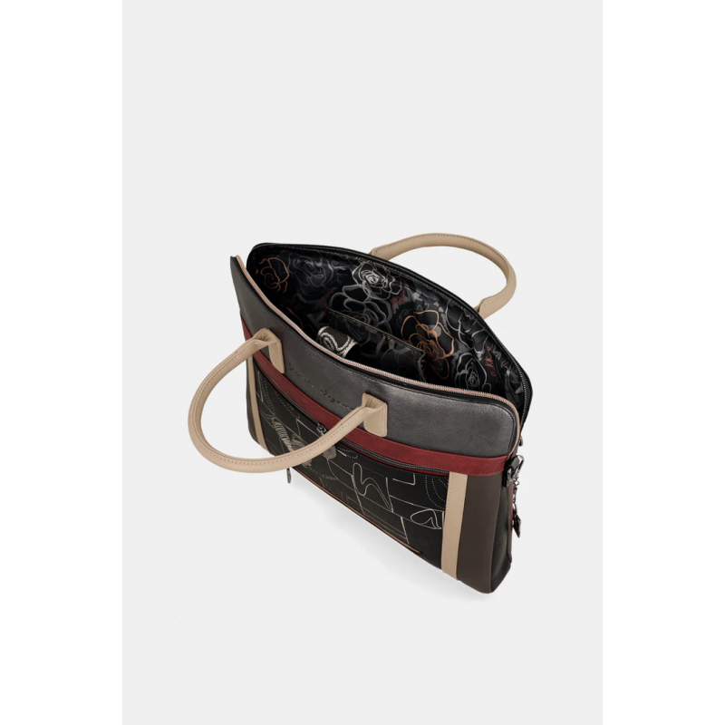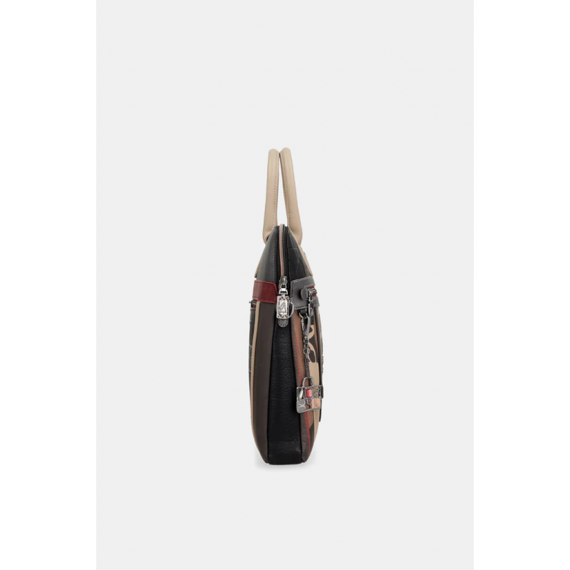 Portadocumentos estampado para mujer de detalles de la marca, llavero, bolsillos exteriores e interiores más doble asa para llevar de mano.