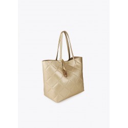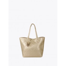 Bolso shopper efecto piel para mujer. Con diseño de monograma en rombos. Incluye logo ovalado colgante dorado. Amplio interior con cierre magnético. Elegante y versátil, ideal para cualquier ocasión.