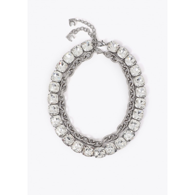 Pack collar para mujer. Incluye un collar de cristal estilo joya y una cadena metálica. Ambas piezas presentan un acabado en plata brillante que aporta sofisticación a cualquier conjunto. Ideal para ocasiones especiales, se puede usar juntas o por separado para un look versátil.