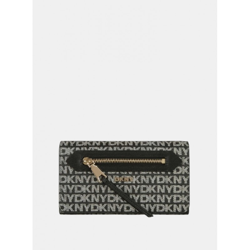 Bolso cartera para mujer. De estampado monogram con asa de bandolera regulable. Cierre de solapa, detalle de bolsillo con cierre de cremallera.