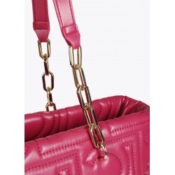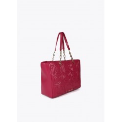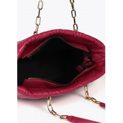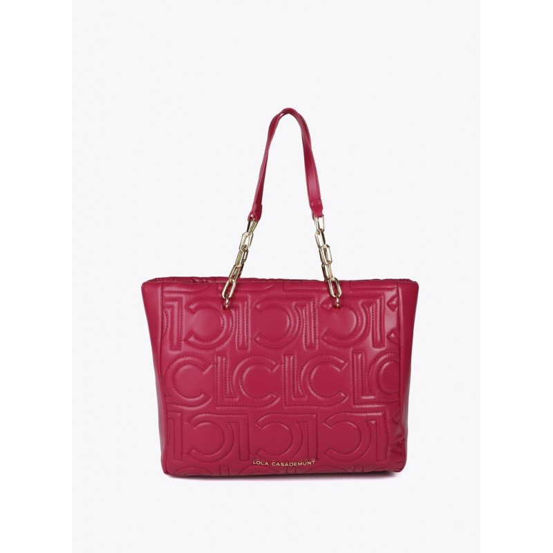 Bolso shopper para mujer. Acolchado con diseño de logotipos en relieve. Fabricado en material de efecto piel, cuenta con asas mixtas de cadena dorada y cierre de cremallera superior. Espacioso y elegante, ideal para llevar todo lo esencial con estilo.