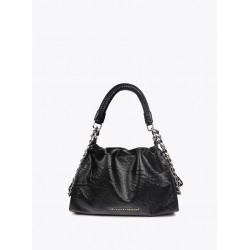 Bolso mediano en efecto piel para mujer. Cadenas de eslabones grandes y tachas XL. Cierre magnético y acabado elegante. Ideal para el uso diario.