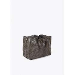 Bolso shopper para mujer. De efecto piel desgastado con detalle de cadena en los laterales. Amplio interior con cierre de cordón y asas reforzadas para mayor comodidad.