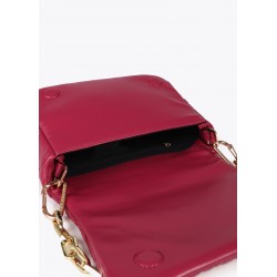 Bandolera acolchada de efecto piel para mujer. Con diseño logotipado en relieve. Asa mixta de cadena y correa ajustable para mayor comodidad. Cierre magnético y amplio interior con un compartimento con cremallera para asegurar tus pertenencias.