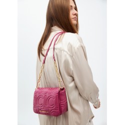 Bandolera acolchada de efecto piel para mujer. Con diseño logotipado en relieve. Asa mixta de cadena y correa ajustable para mayor comodidad. Cierre magnético y amplio interior con un compartimento con cremallera para asegurar tus pertenencias.