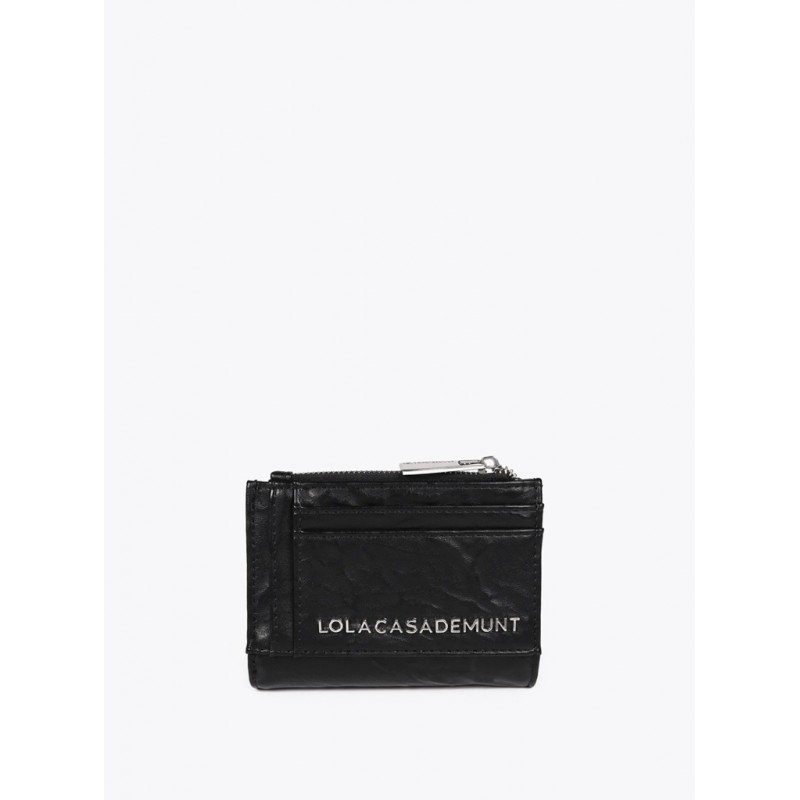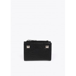 Monedero con efecto piel arrugada para mujer. Detalles de tachas metálicas. Ofrece varios compartimentos interiores y cierre seguro de cremallera, combinando estilo y funcionalidad.