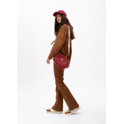 Bolso bandolera para mujer. Efecto piel con monograma de rombos en relieve. Cierre seguro con cremallera y logo ovalado dorado distintivo. Correa ajustable con logo. Ideal para un estilo sofisticado.