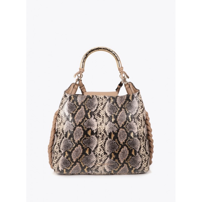 Bolso shopper para mujer. Cuenta con una elegante asa metalizada con logotipo personalizado. Espacioso interior y cierre magnético. Ideal para un toque sofisticado en cualquier ocasión.