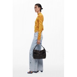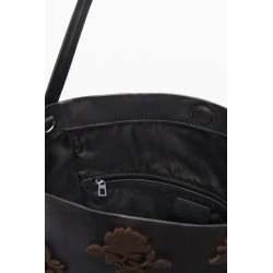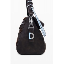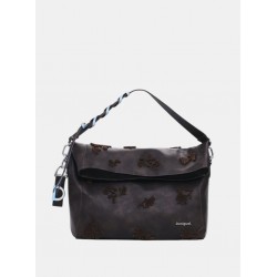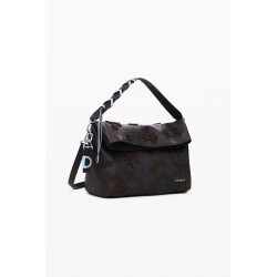 Bolso de mano convertible a mochila ,con solapa extensible y asas intercambiables en color liso con detalles ornamentales en folcado.