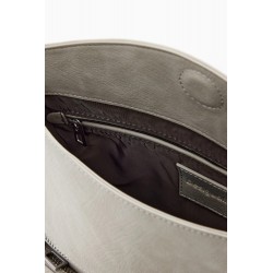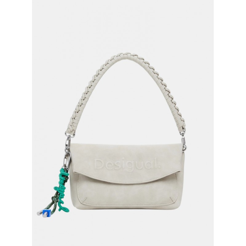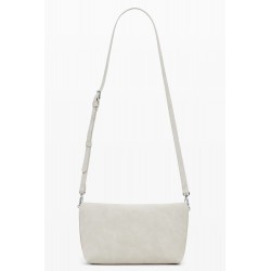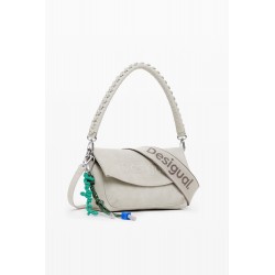 Bolso bandolera para mujer, en tejido efecto piel, con logo efecto 3D, cierre de cremallera, solapa extensible, asas intercambiables y llavero extraíble en color liso.