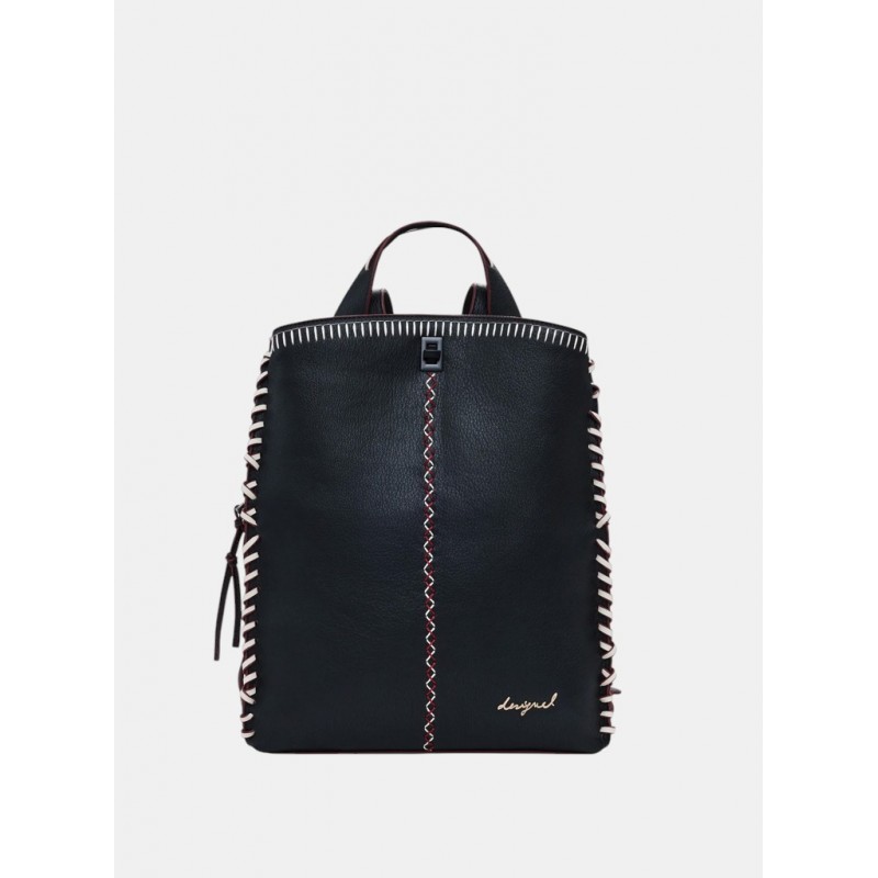 Mochila grande en efecto piel con pespuntes a contraste, varios compartimentos y asa tipo bolso extraíble.