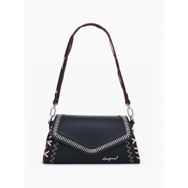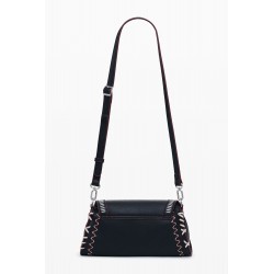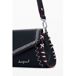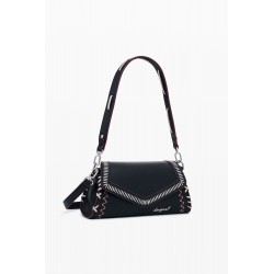 Bolso bandolera para mujer de tamaño mediano, cierre de cremallera y solapa, en tejido efecto piel, con detalle de costuras decorativas y asas intercambiables.