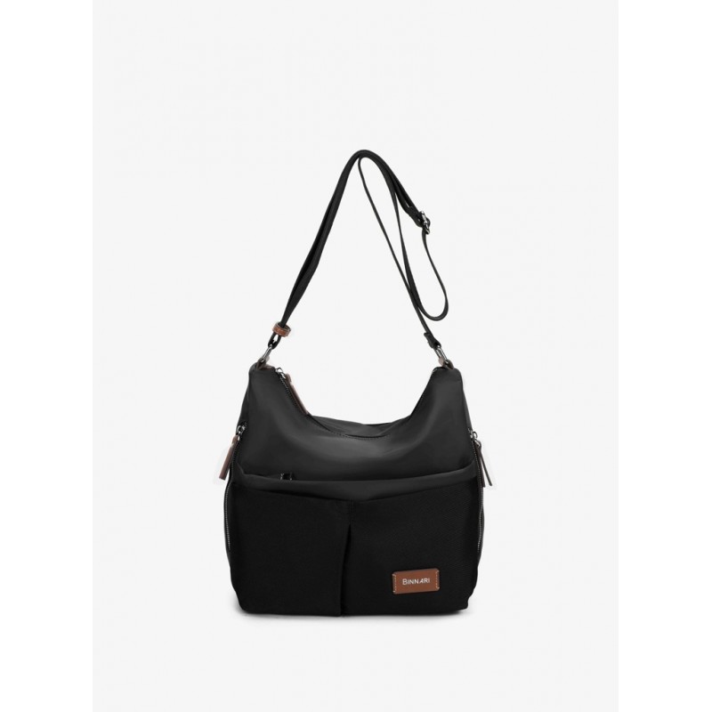 Bolso de hombro para mujer. Confeccionado en nylon recilado y pu de alta calidad. 2 posiciones: hombro y bandolera. Asas ajustables. Interior 3 bolsillos, uno de ellos con cremallera. Exterior: chapón logo Binnari y dos bolsillos.