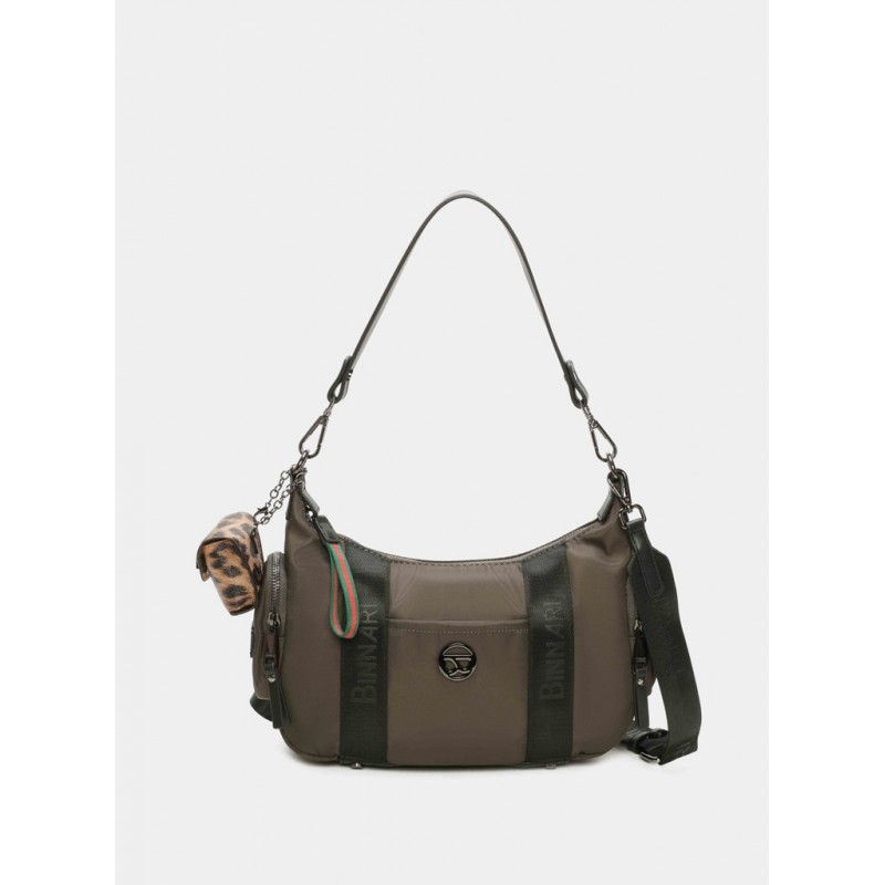 Bolso hombro para mujer. Confeccionado en nylon reciclado y detalles en pu. Bolso pequeño extraible. Tirador decorativo. Logo Binnari en parte lateral y frontal delantera 2 posiciones: hombro y bandolera. Asa ajustable.