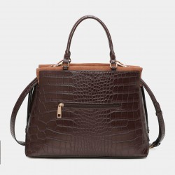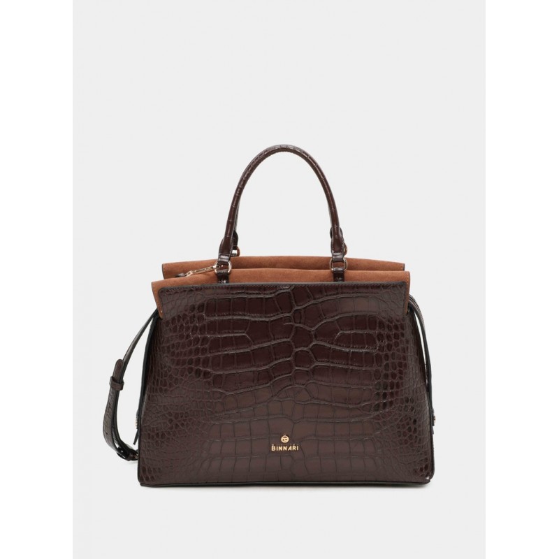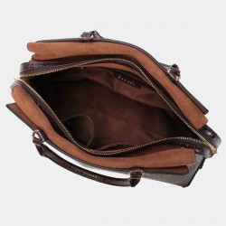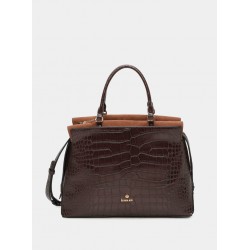 Bolso mano para mujer. Confeccionado en coco sintético y antelina. Asa ajustable. 2 posiciones: mano y bandolera. Interior: 3 bolsillos, uno con cremallera.