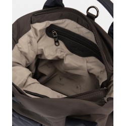 Mochila para mujer. De nylon bicolor, con bolsillos frontales, asas regulables en formato bolso ó mochila.