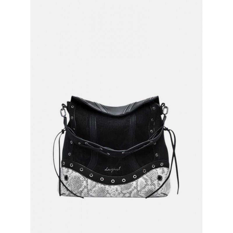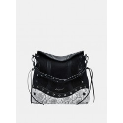 Mochila mediana en efecto piel, con estampado de serpiente y asas intercambiables convertible a bolso.