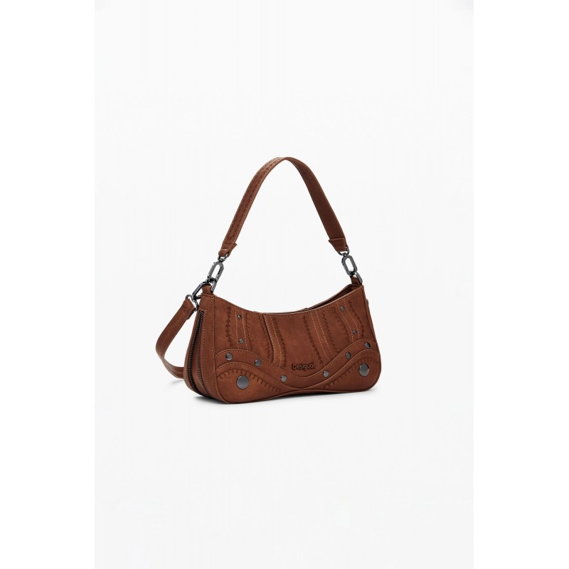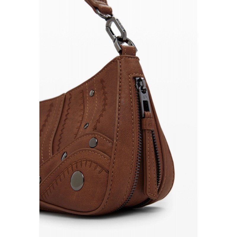 Bolso pequeño cruzado en efecto piel de color liso con efecto patch, bordados 3D y detalle de tachuelas metálicas.