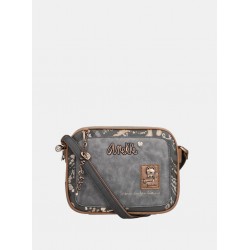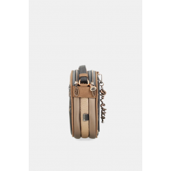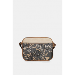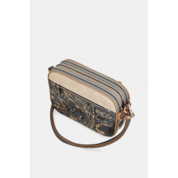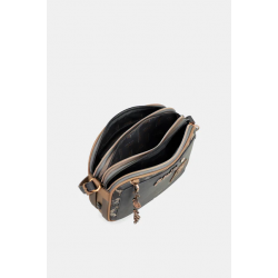 Bolso bandolera para mujer de 3 compartimentos con cierre de cremallera, detalles de estampados de la marca, llavero, bolsillos interiores y exteriores más asa ajustable.