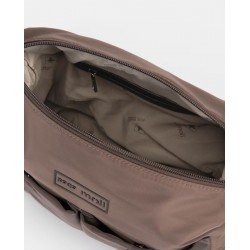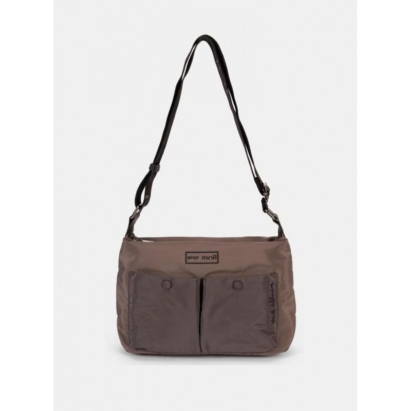 Bolso bandolera para mujer. De nylon bicolor, con bolsillos frontales, asas regulables.