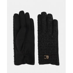 Guantes combinado tweed para mujer. Brillante con chapita LC decorativa.