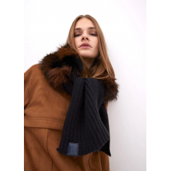 Bufanda estampada para mujer. Combinada de punto y tejido efecto pelo.