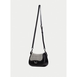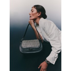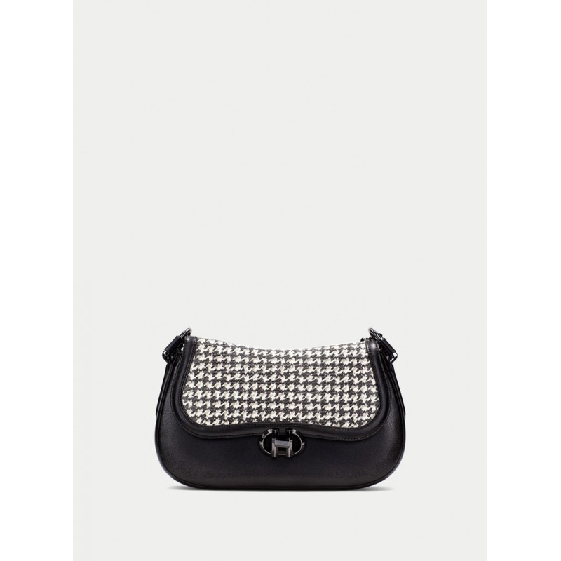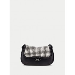 Bolso de hombro para mujer. media luna con cierre de solapa con estampado tweed. Incorpora correa extensible.Fabricado en PU.Forro interno con detalle del logo de la marca.