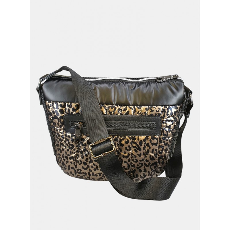 Bolso para mujer de cierre de cremallera, detalles de la marca, bolsillos exteriores e interiores más asa ajustable para llevar tipo bandolera.