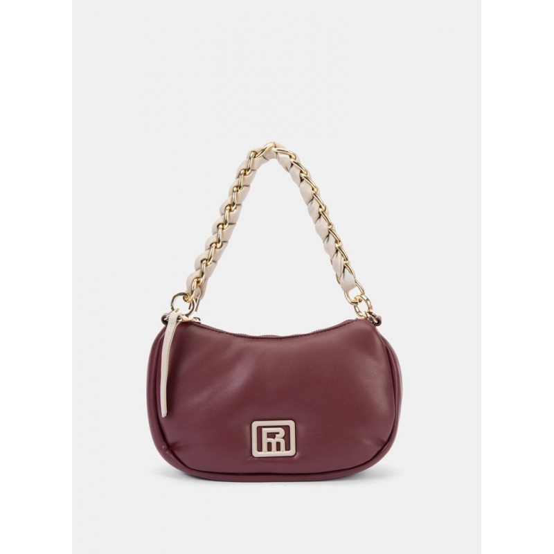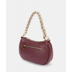 Bolso de hombro para mujer. Diseño compacto tipo media luna.Correa de hombro con cadena entrelazada.Bolsillo trasero con cremallera para acceso rápido.