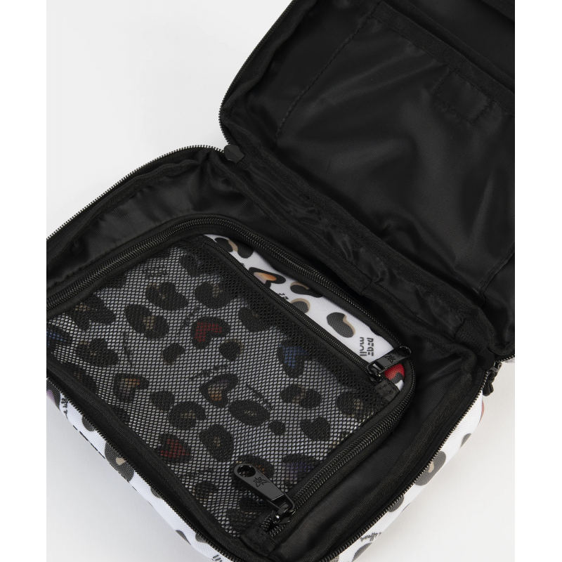 Neceser estampado para mujer. Interior con doble compartimento y bolsillo extra. Acabado impermeable para proteger tus esenciales. Tamaño ideal para maleta o mochila. Cierre seguro con cremallera.