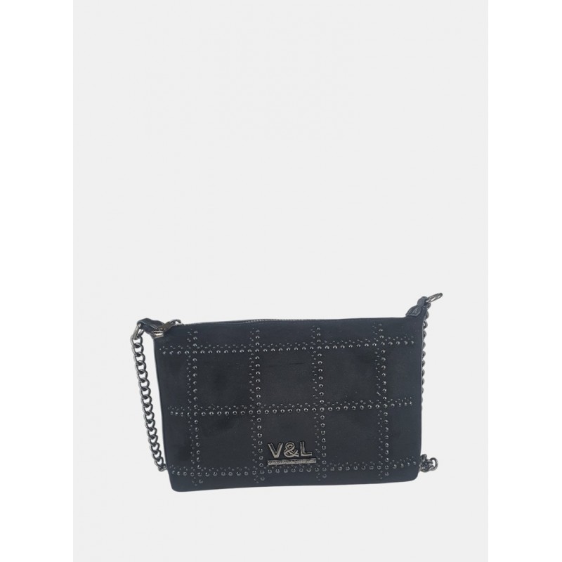 Bolso bandolera para mujer. Cierre superior de cremallera. Realza con una cuadrícula de tachuelas metálicas, creando un look moderno y atrevido.