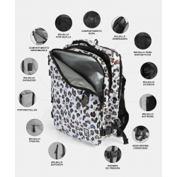 Mochila estampada para mujer de dos compartimentos con cierre de cremallera, múltiples compartimentos y su acabado resistente al agua, correas ajustables acolchadas , detalles de la marca y bolsillos exteriores e interiores.