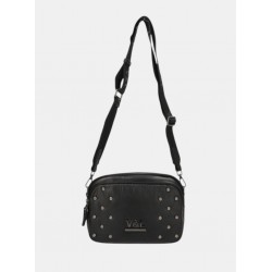 Bolso acolchado para mujer de cierre principal de cremallera, diseño de tachuelas bolsillo parte delantera, bolsillos exteriores e anteriores, detalle de la marca en metal y asa ajustable y extraíble para llevar tipo bandolera.
