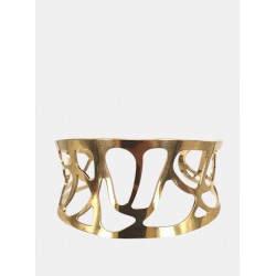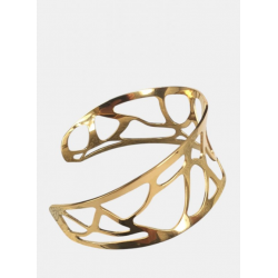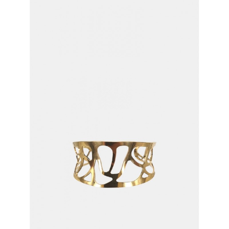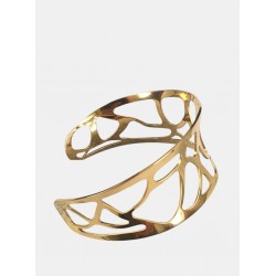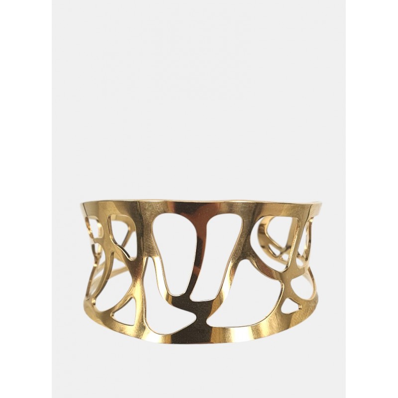 Pulsera brazalete para mujer de diseño calado que presenta formas orgánicas, irregulares o abstractas que se asemejan a patrones de naturaleza. Una pieza llamativa y moderna para tu día a día.