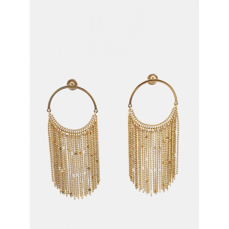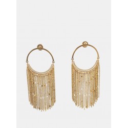 Pendiente de acero quirúrgico hipoalergénicos para mujer de diseño de aro incompleto del que cuelga un denso fleco de múltiples cadenas finas, ofreciendo un gran movimiento y un estilo llamativo de fiesta o glamour.