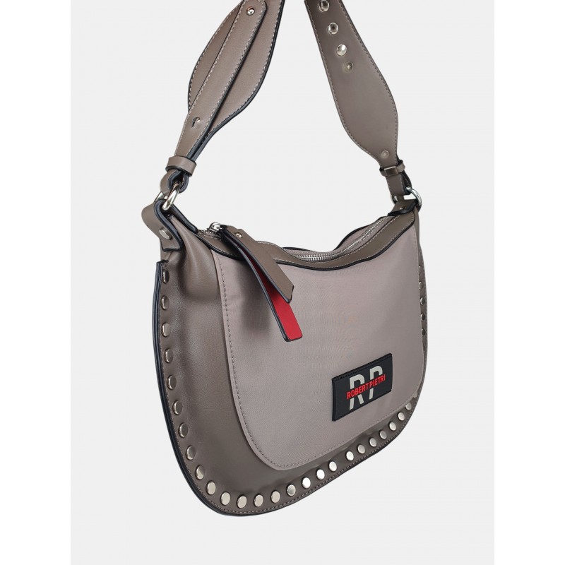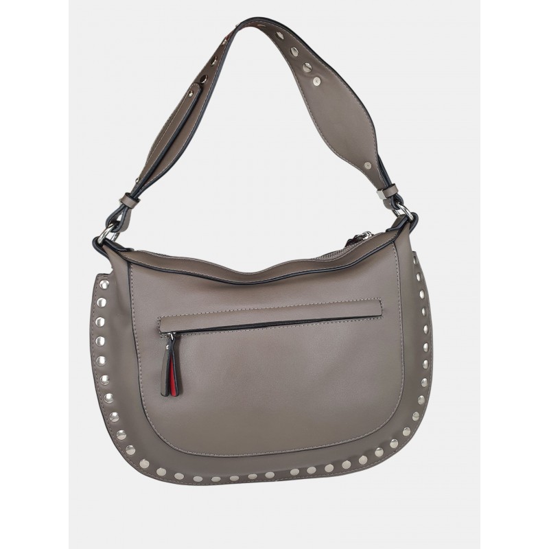 Bolso de hombro para mujer. En efecto piel combinado con nylon al tono. Original bandolera regulable decorada con tachas al igual que todo el alrededor.