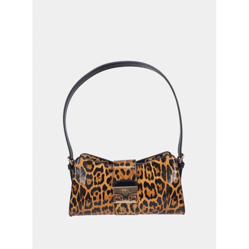 Bolso de hombro para mujer. Estampado animal print. Cierre metálico frontal con logotipo grabado.