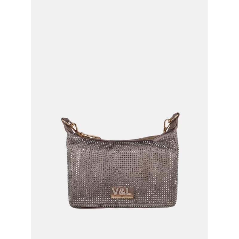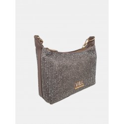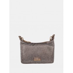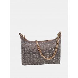 Bolso para mujer de strass, detalle del logo en metal en la parte frontal, cierre principal de cremallera y cadena extraíble para llevar al hombro.