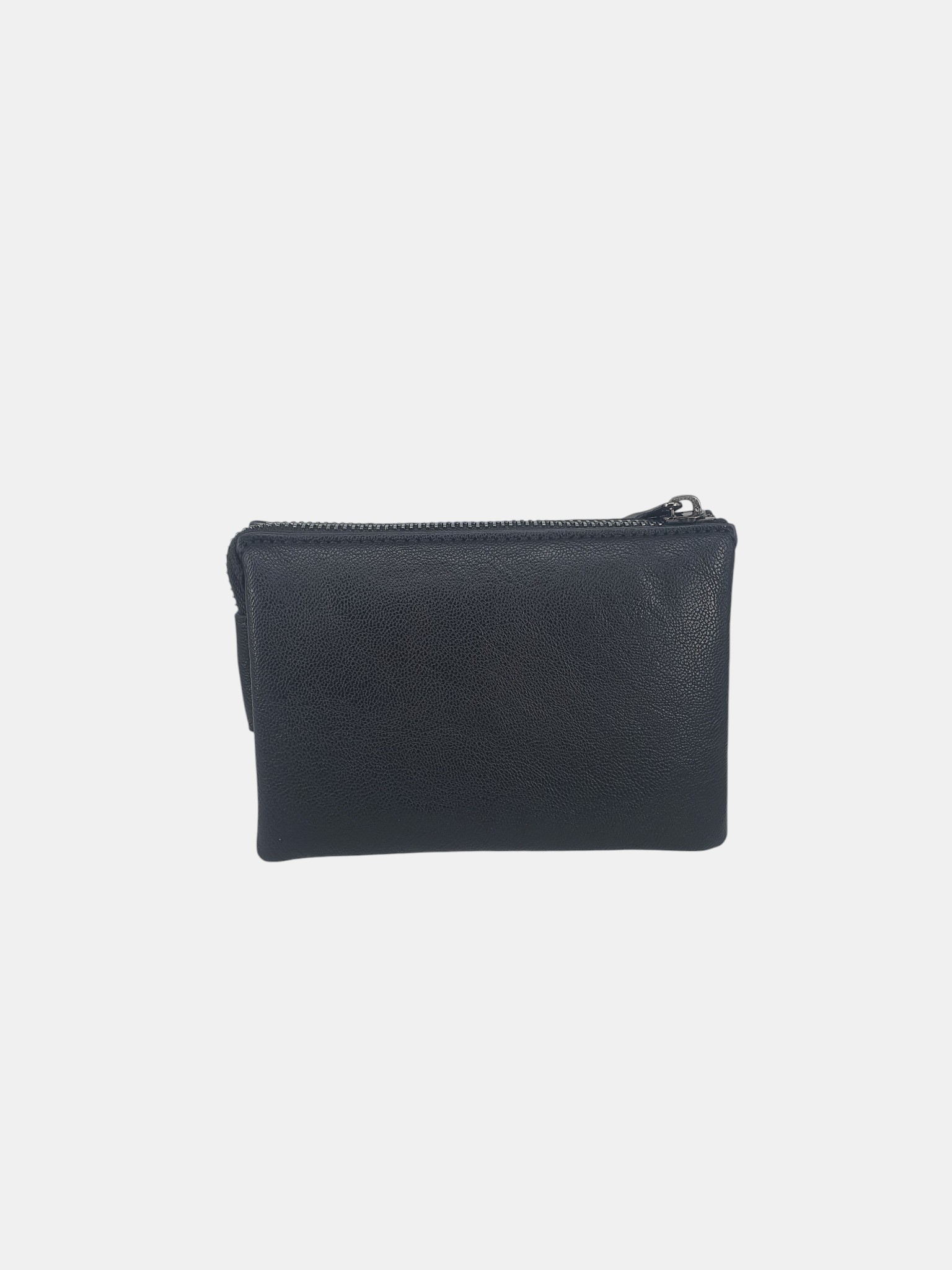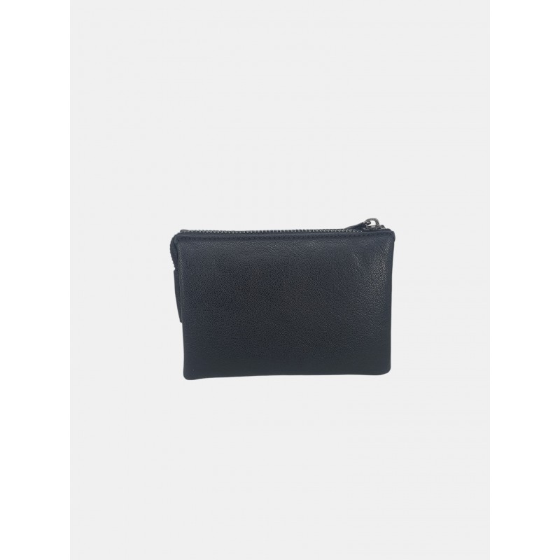 Neceser elegante para mujer. Presenta un diseño en antelina negra con un distintivo patrón de tachuelas metálicas formando cuadros en la parte frontal. Logo metálico V&L y cierre de cremallera superior.