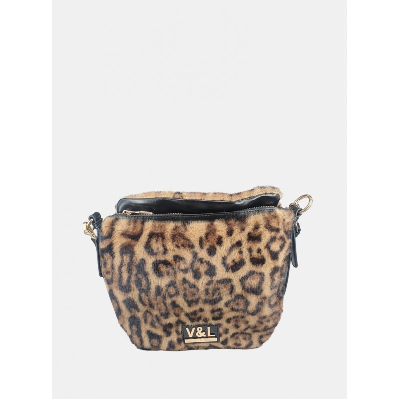 Bolso bandolera para mujer. Pelo sintético muy suave imitación leopardo. Bandolera en piel sintética. Diseño elegante, moderno y versátil.