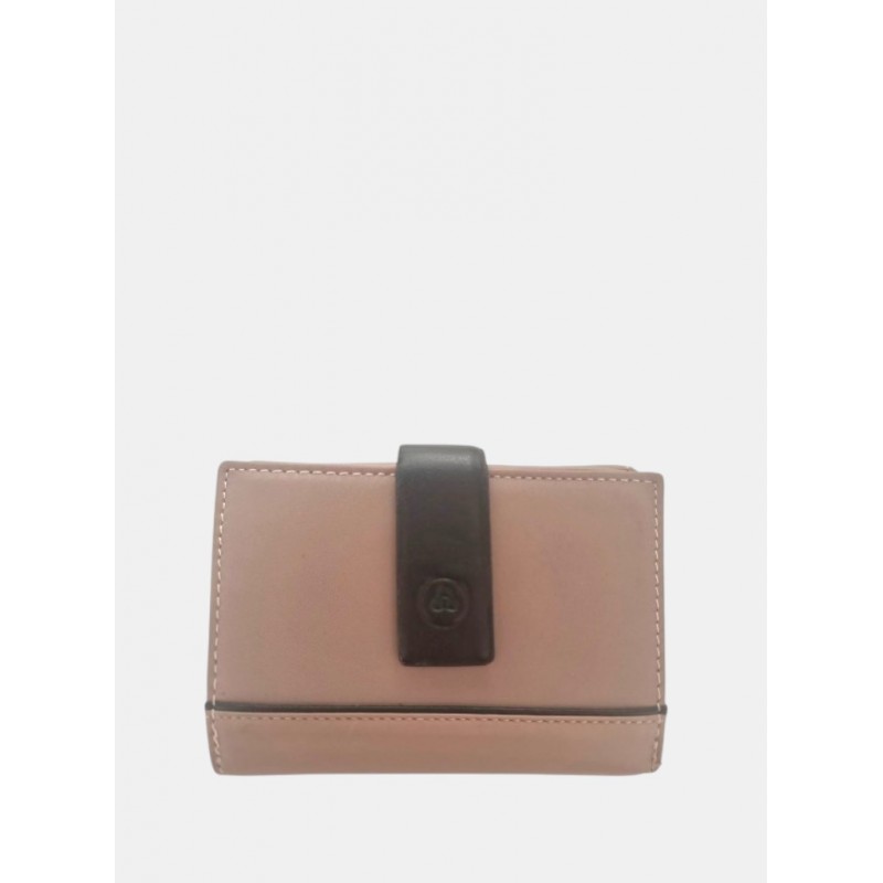 Cartera en piel para mujer con sistema de cierre de solapa a presión, interior organizado para tarjeta y cierre de cremallera más exterior monedero con cierre de solapa.