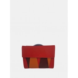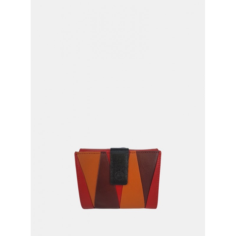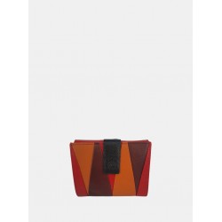 Cartera en piel para mujer con sistema de cierre de solapa a presión, con un diseño de patchwork geométrico, interior organizado para tarjeta más exterior monedero con cierre de solapa.