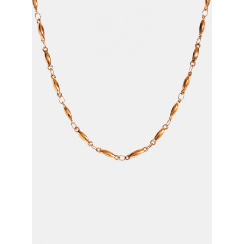 Collar dorado de diseño de óvalos delicadamente conectados, un diseño minimalista pero cautivador logra encontrar el equilibrio perfecto entre lo discreto y lo sofisticado, ideal para quienes aprecian la belleza en los pequeños detalles.