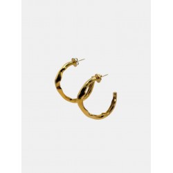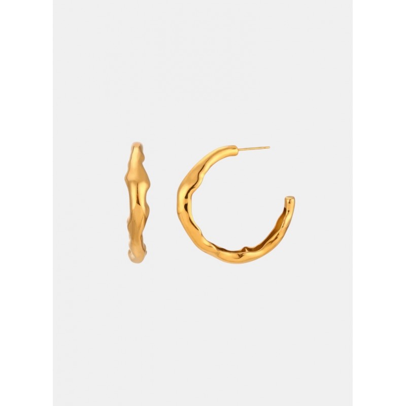 Aros dorados para mujer. Con curvas irregulares que aportan un toque distintivo y natural. Cada pendiente refleja la luz de manera sutil, como el brillo de un río bajo el sol, haciendo que resalten sin ser ostentosos. De acero inoxidable.