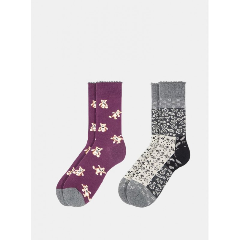 Pack dos calcetin para mujer. En algodón estilizado cálido y de tacto suave. Puño sensitive antipresión y punteras sin costuras.