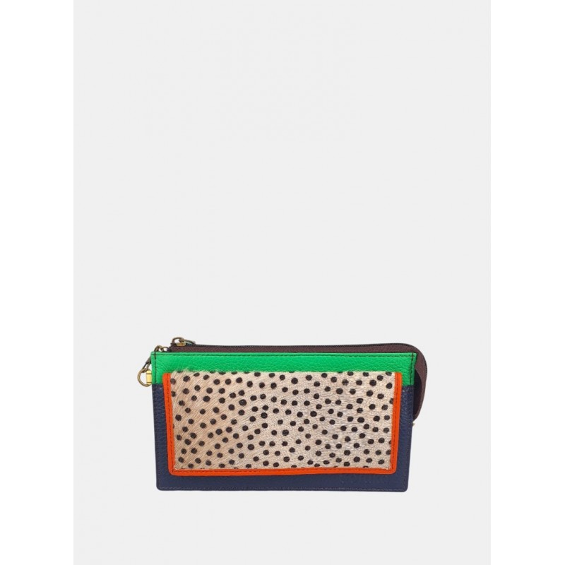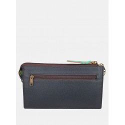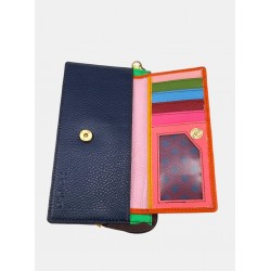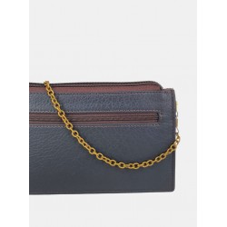 Cartera de piel para mujer. Incluye una cadena metálica dorada opcional, permitiendo usarlo como bolso de mano, bandolera ligera o simplemente como una billetera grande dentro de un bolso mayor.