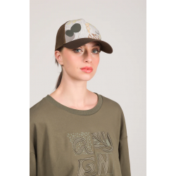 Gorra estampada para mujer. Su diseño incorpora estampados originales inspirados en las colecciones temáticas de la marca, junto a detalles bordados, apliques decorativos y acabados cuidados al milímetro. Cuenta con visera curva y cierre ajustable en la parte trasera, lo que garantiza un ajuste perfecto.