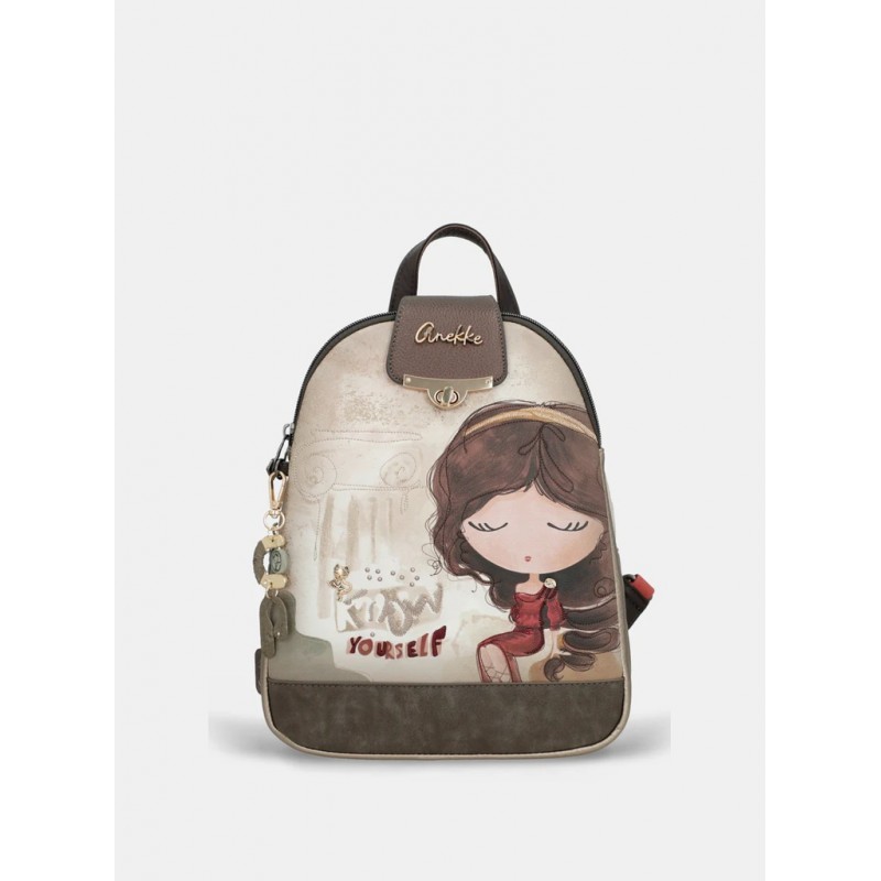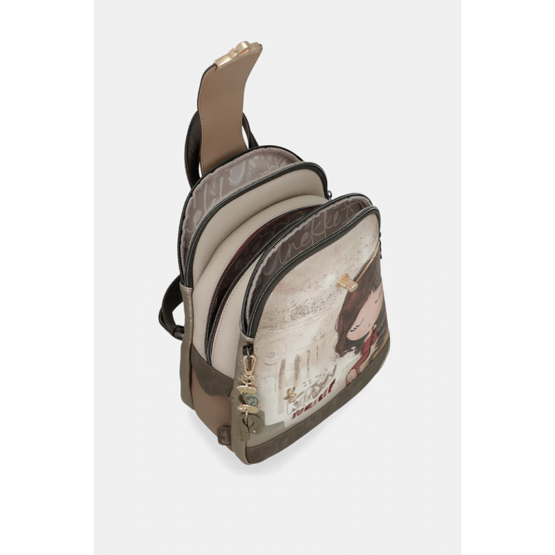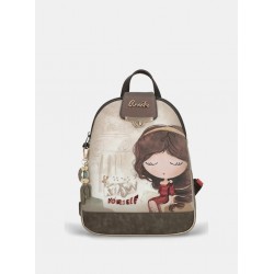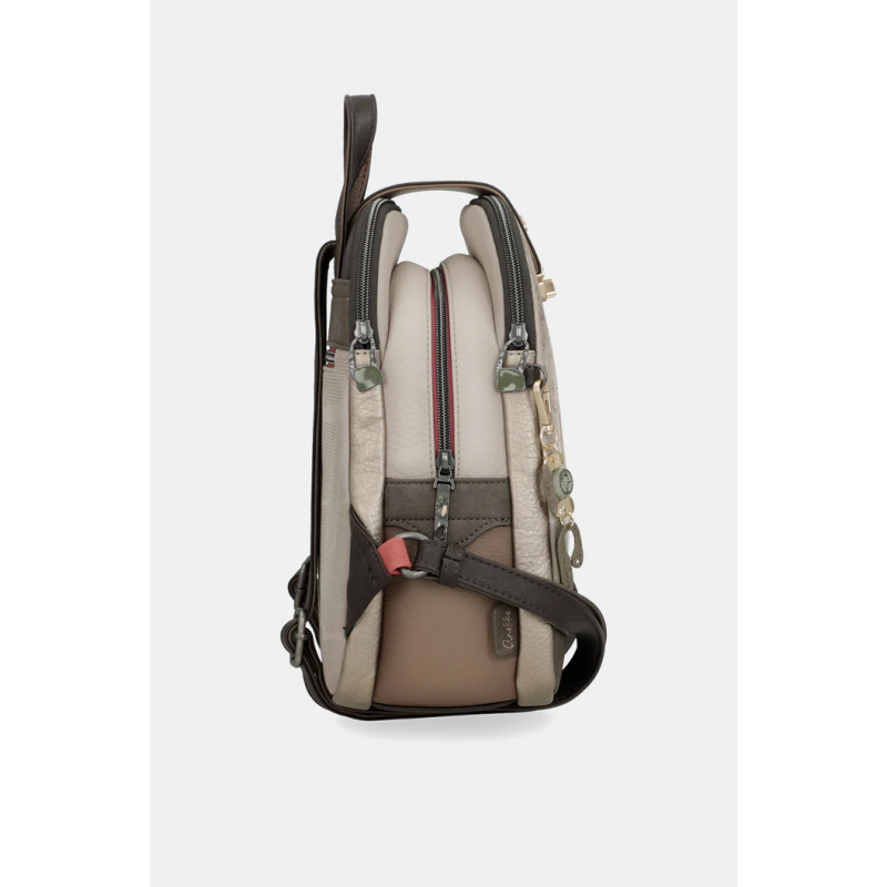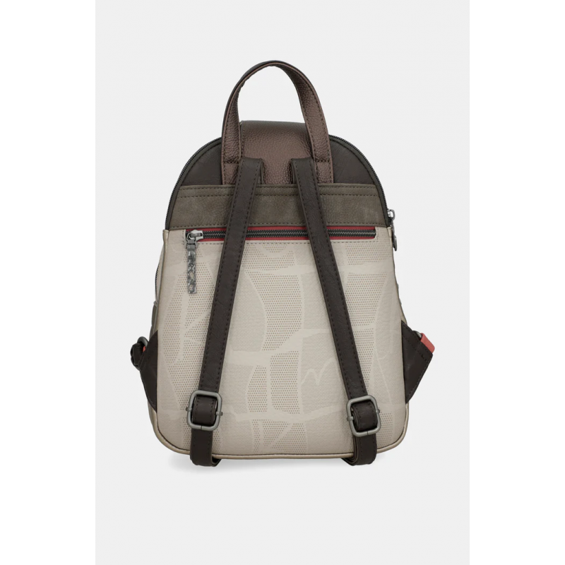Mochila estampada para mujer. Cierre de cremallera. 2 guanteras, 1 bolsillo trasero.