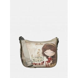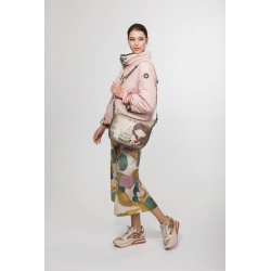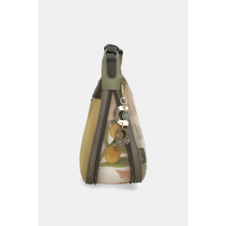 Bolso estampado para mujer de cierre principal de cremallera, bolsillo exterior más interiores, detalle de charm y asa ajustable para llevar tipo bandolera.